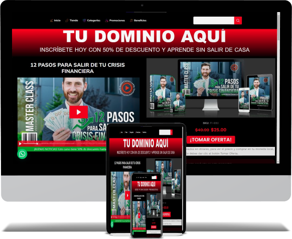 • TENDRÁS ACCESO A UNA PLANTILLA DE PÁGINA DE VENTAS EXCLUSIVA PARA VENDER LOS CURSOS, ESTA ES PERSONALIZABLE A TODOS LOS CURSOS DE LA TIENDA.